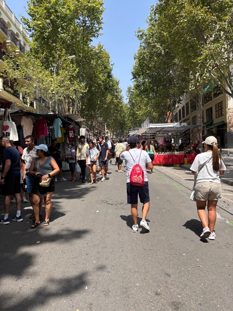Today we took the metro down to the Lavapiés neighborhood again for some brunch. After that, we walked around the El Rastro street market. It’s a huge flea market open every Sunday with hundreds of stalls selling leather goods, jewelry, clothing, books, and a lot more. We got some gifts and I found a leather bag for work. We’re having a bit of a relaxing afternoon before we head to our third and final gym and out for dinner. Tomorrow work starts, which is exciting! I’m looking forward to meeting my colleagues and hearing more about how the school year will work.