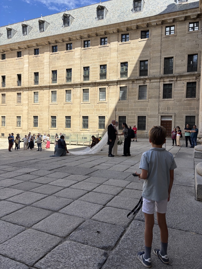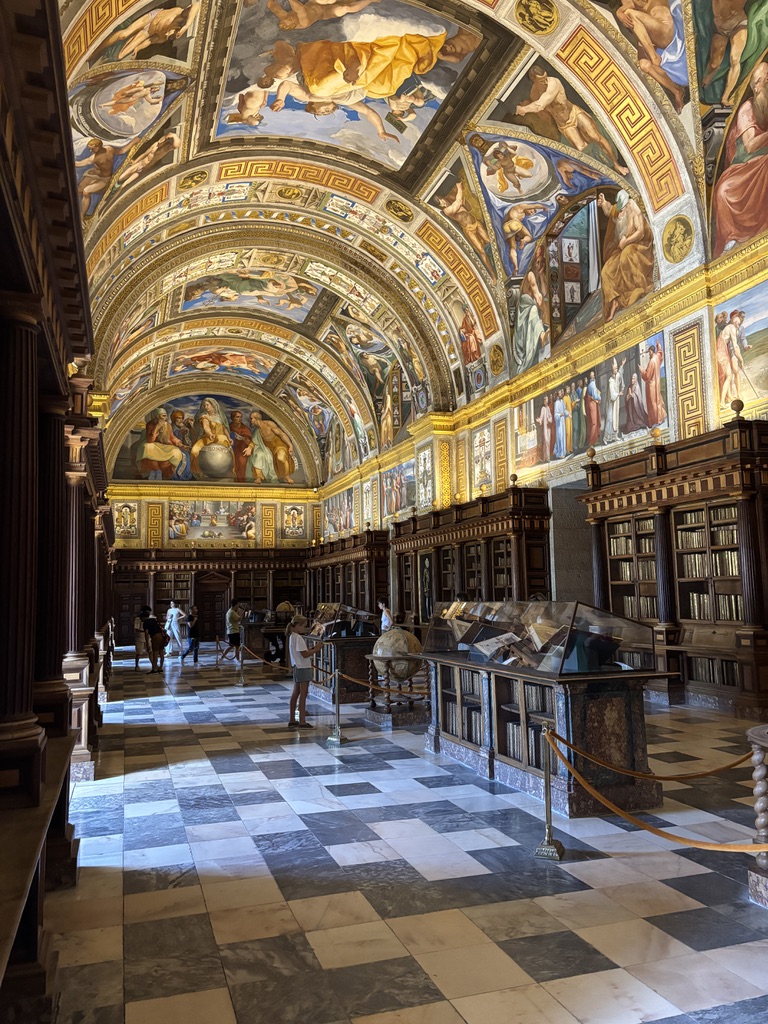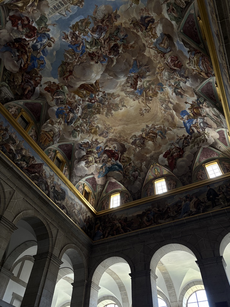 The visit began in the monastery portion, where we toured the library, which had large globes and books in both Spanish and Arabic on display. On our way past the basilica, we found ourselves in the middle of a wedding! The bride walked across this very large courtyard and into the ceremony while we watched. It was awesome. The rest of the tour included beautiful frescos, a painting gallery, the burial site of many royal family members and former Kings and Queens of Spain, and the private residence area of the palace. See some of the photos below!