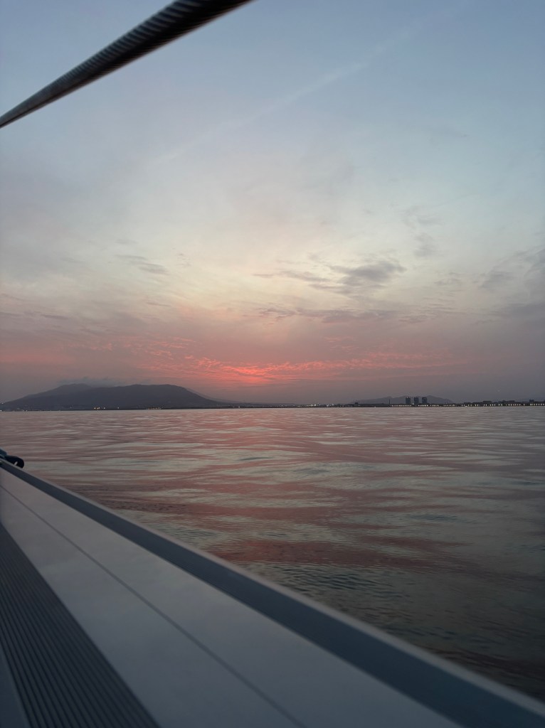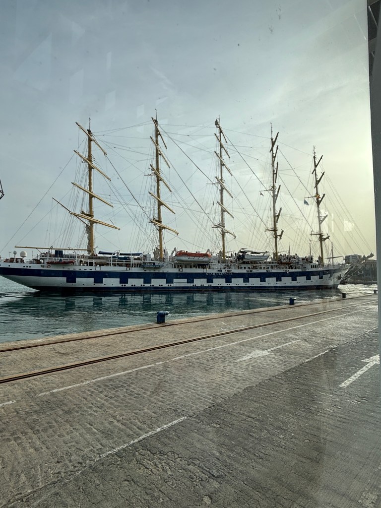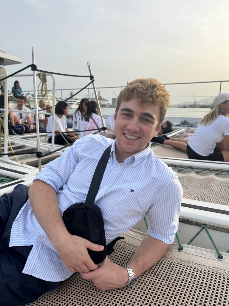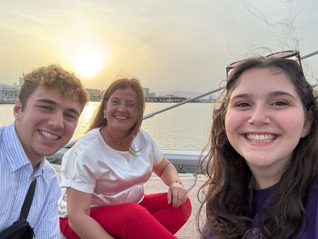 On Sunday (birthday!), we had a slower morning. Paula decorated for me, which was really sweet! Then we had some breakfast and spent much of the afternoon on the beach. It was a perfect beach day, and the water was quite warm! We headed back to the city center for a sunset Catamaran ride. Before getting on, we walked up the pier a bit and saw the largest rigged sailboat in the world (5 masts!). Our (much smaller) boat was pretty full, but we got there a little early to secure a prime spot up front on the nets between the pontoons. We met our new best friend, a businesswoman named Pilar from Valencia (see photo). We chatted about all of her business ventures, her son, and pretty much everything else! After the boat ride, we walked to the restaurant for dinner, which was delicious! We finished the night off with a slice of cake in the apartment and some TV (I fell asleep on the couch).