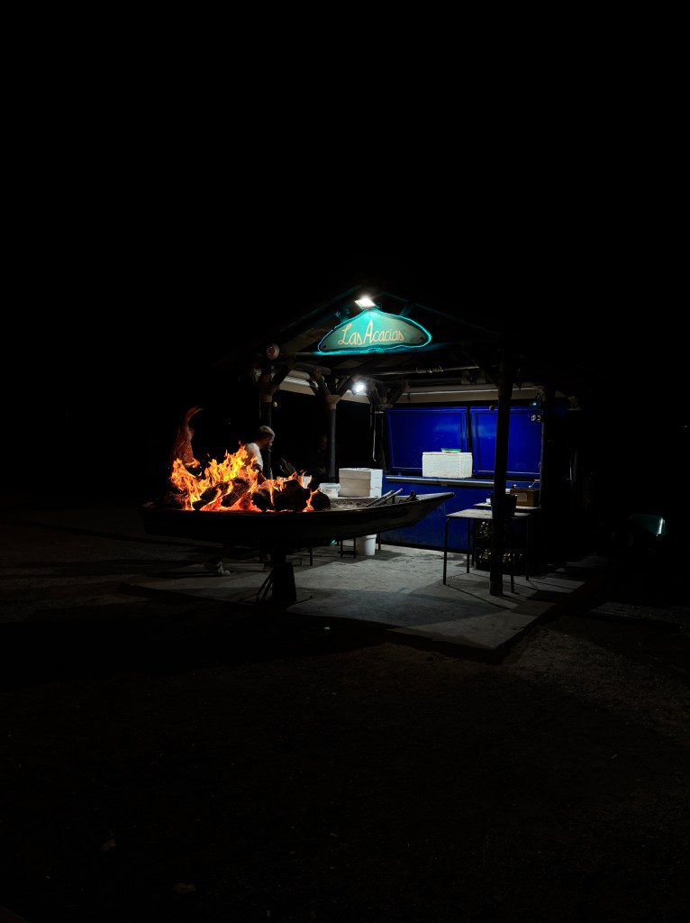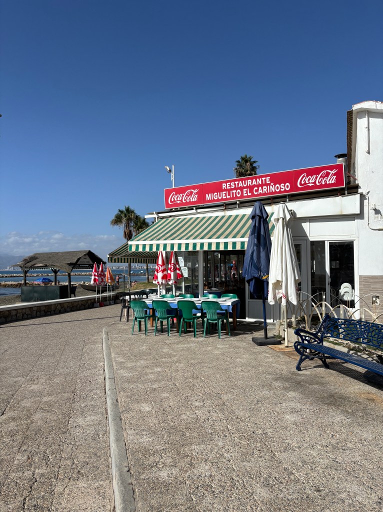 Besides seeing some of Málaga, a big goal for me this weekend was to relax, catch up on some of my reading, and sleep! On Saturday morning, we took a short bus ride into town and had breakfast on a whim at what claimed to be an authentic American diner. It was all decorated for fall/Halloween, which was fun, but no home fries, so the authenticity only stretched so far. After that, we walked through Málaga’s historic center, saw the cathedral and the Alcazaba (fortress). Then we headed to the central park area and across to the waterfront. We walked up the newly renovated pier and saw huge ships and some old sailboats. We stopped at the Centre Pompidou, a modern art museum (see some photos), and headed back to Paula’s family’s apartment for some rest. I went for a run along the beach, which was beautiful! Then we set out on foot to get dinner at a beachside fish restaurant. They roast the fish over fires in grills made out of small row boats! We ate very well!