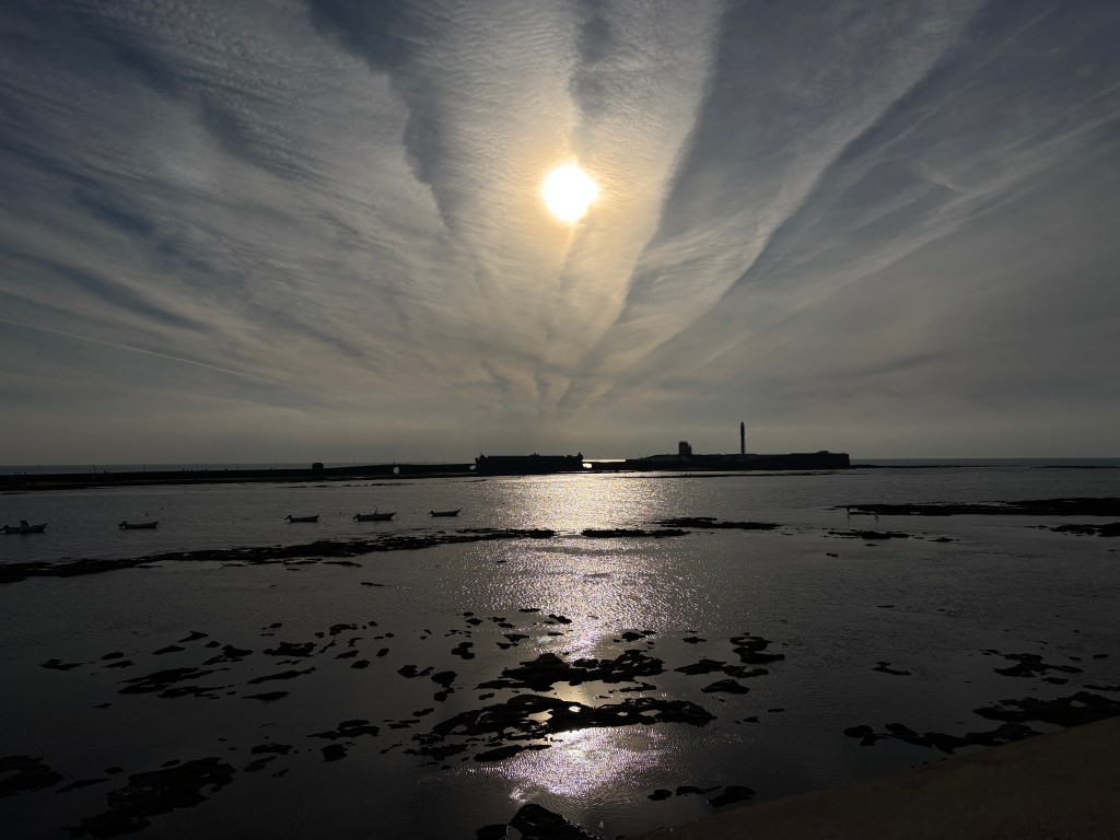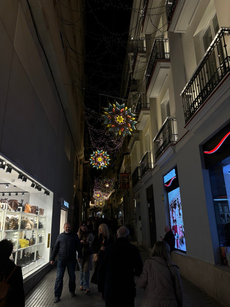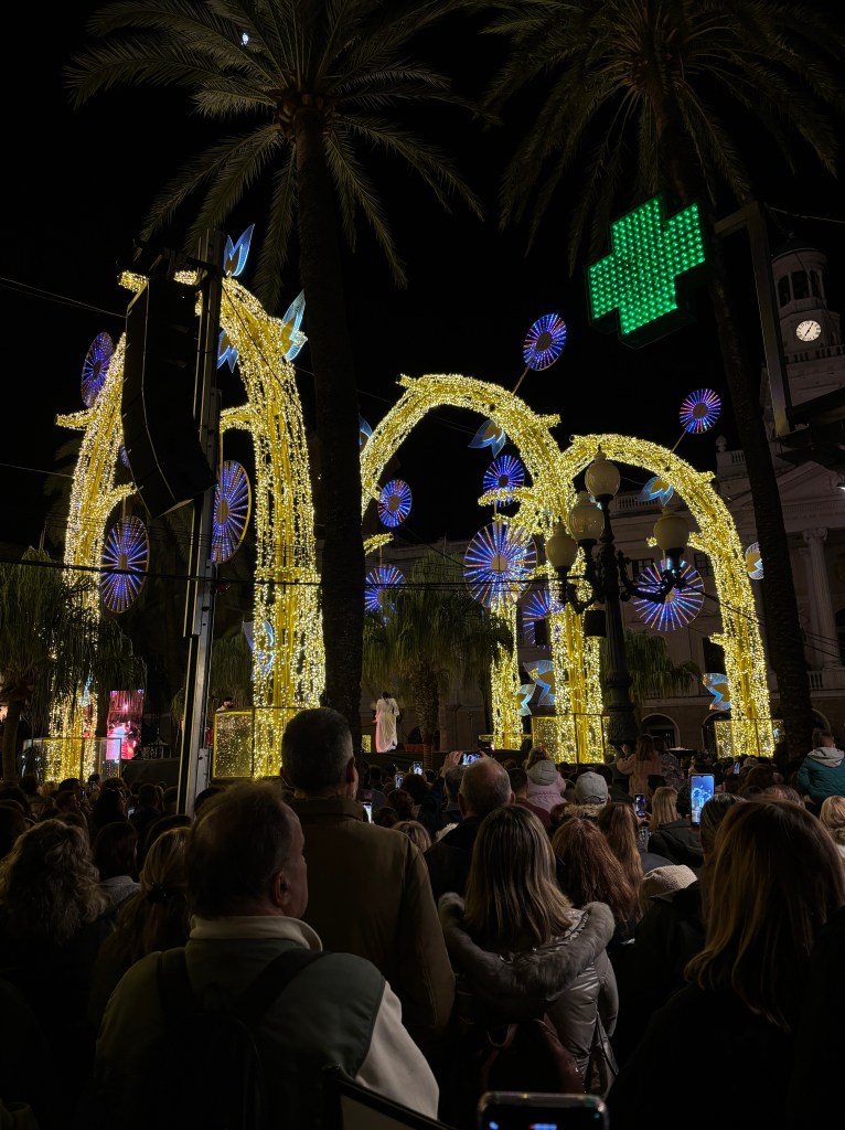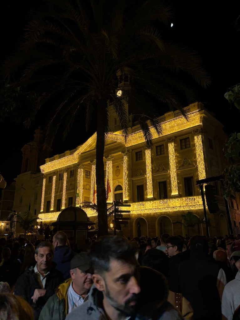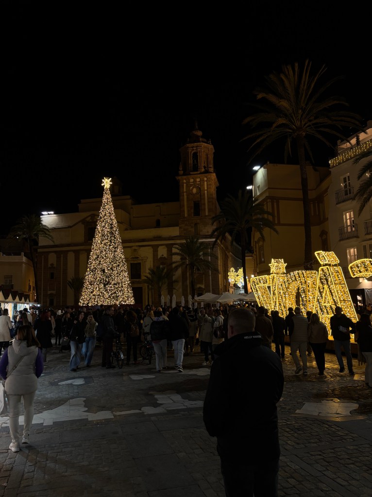 As promised, my back-to-back update! On Friday, I took the train down to Cádiz from Madrid to visit Victoria! She’s living across the bay in Rota, Spain, on her first tour in the Navy. My train arrived midday, and she took the ferry across from Rota to meet me. We dropped our stuff at our Airbnb, an apartment in an old villa with a beautiful rooftop (and pool!). Cádiz is a gorgeous small city packed with history and interesting sights to see. We spent much of the day on Friday exploring on foot. By around 7pm, we headed over to the main plaza for the annual Christmas lighting ceremony. It began with a band and an amazing Flamenco dancer on a large stage in front of the local government building. In the first performance, they turned on most of the lights in the square. Then there were a few minutes when everyone shuffled around before the second performance with a cellist on a balcony and a whole chorus. The building lights flashed, and then flame throwers around the gutters started shooting out fire. It was AWESOME! After the show, we walked around a bit more and settled at a small bar for drinks and tapas to end the night.