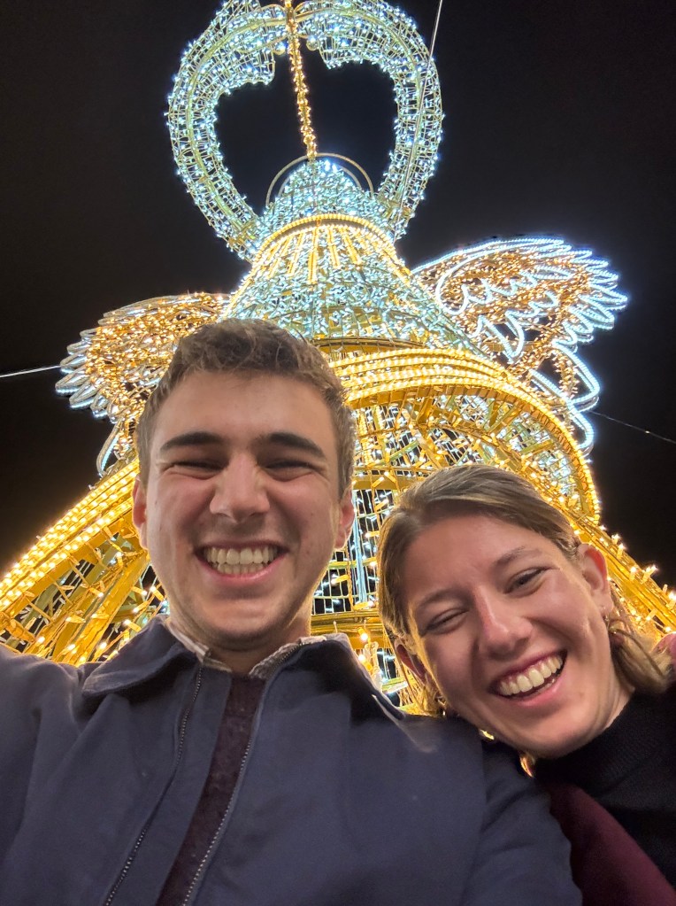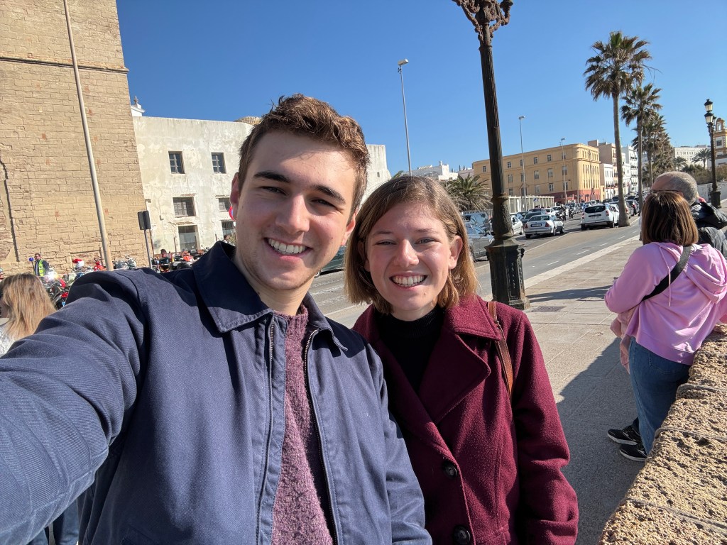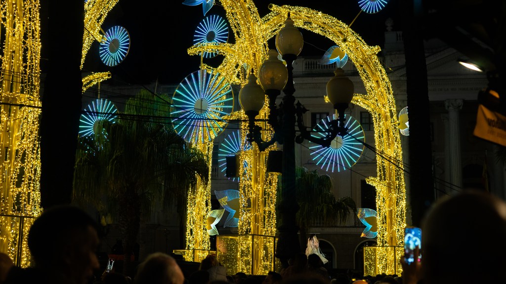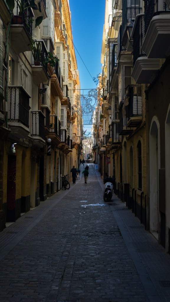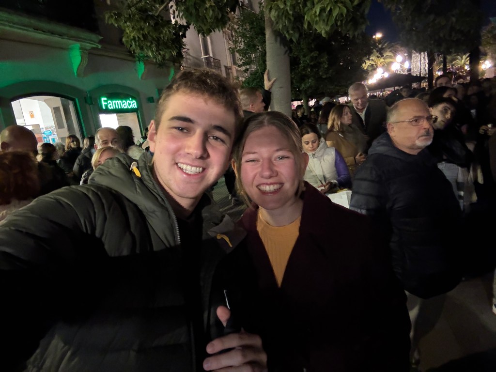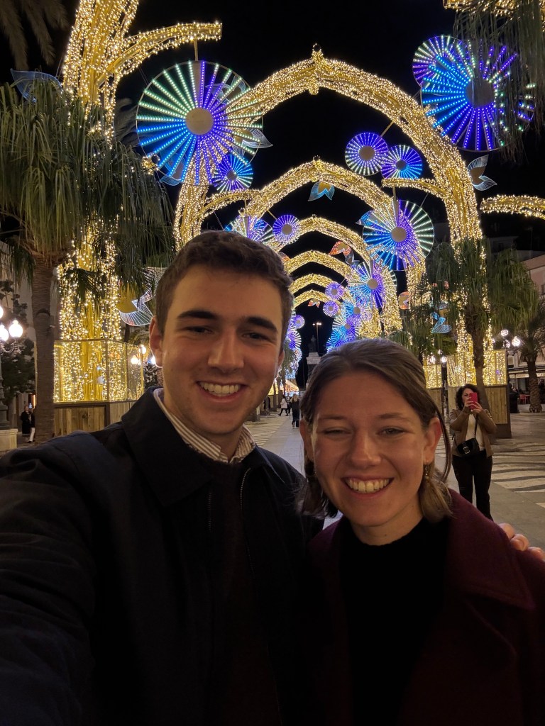 As promised, my back-to-back update! On Friday, I took the train down to Cádiz from Madrid to visit Victoria! She’s living across the bay in Rota, Spain, on her first tour in the Navy. My train arrived midday, and she took the ferry across from Rota to meet me. We dropped our stuff at our Airbnb, an apartment in an old villa with a beautiful rooftop (and pool!). Cádiz is a gorgeous small city packed with history and interesting sights to see. We spent much of the day on Friday exploring on foot. By around 7pm, we headed over to the main plaza for the annual Christmas lighting ceremony. It began with a band and an amazing Flamenco dancer on a large stage in front of the local government building. In the first performance, they turned on most of the lights in the square. Then there were a few minutes when everyone shuffled around before the second performance with a cellist on a balcony and a whole chorus. The building lights flashed, and then flame throwers around the gutters started shooting out fire. It was AWESOME! After the show, we walked around a bit more and settled at a small bar for drinks and tapas to end the night.