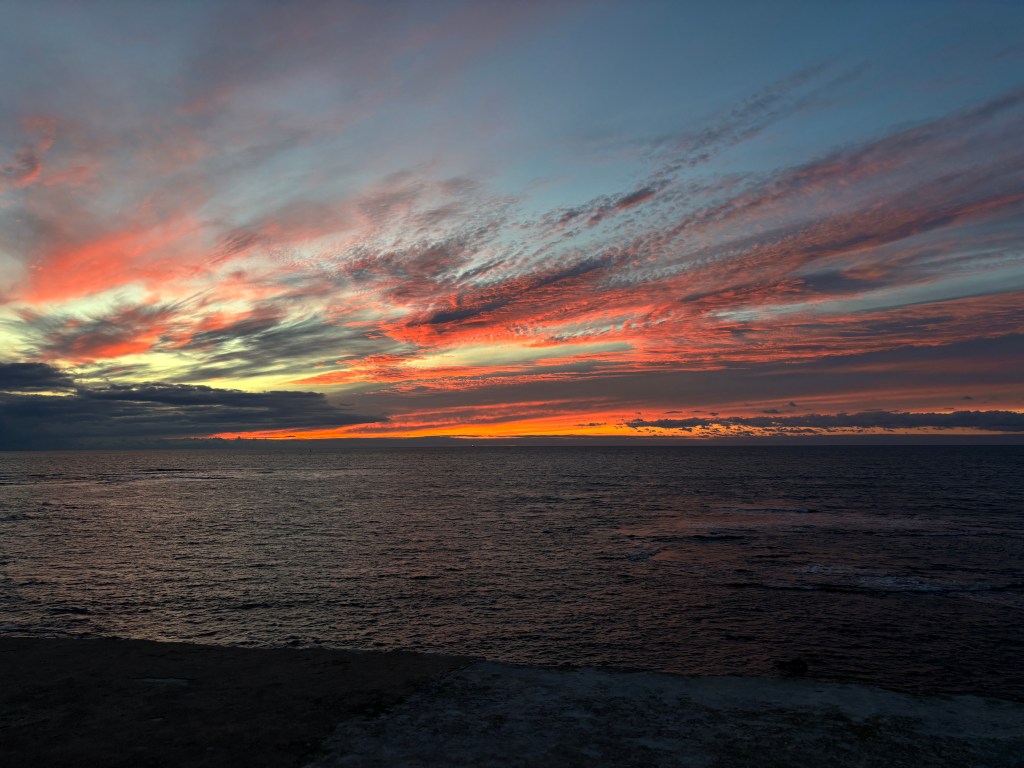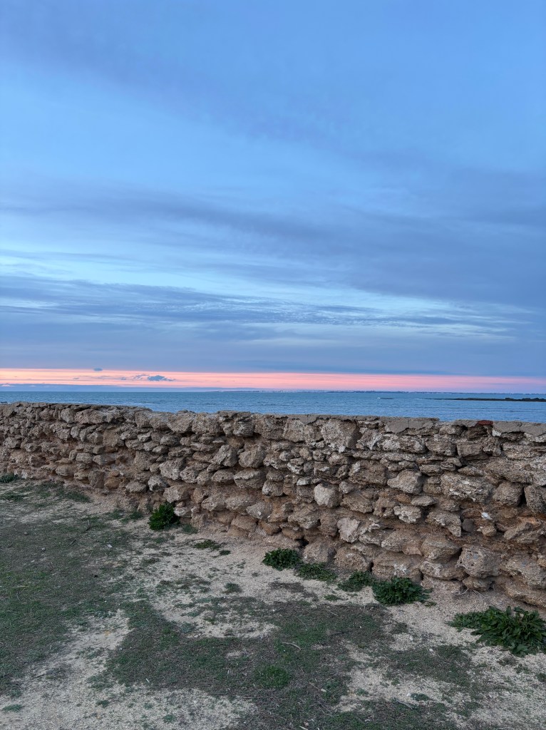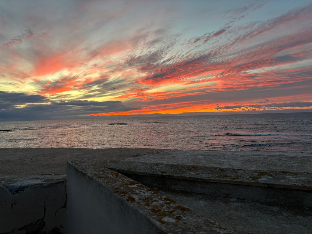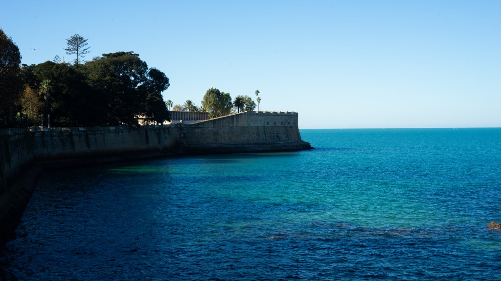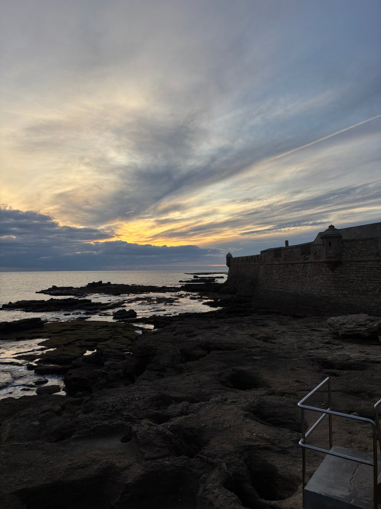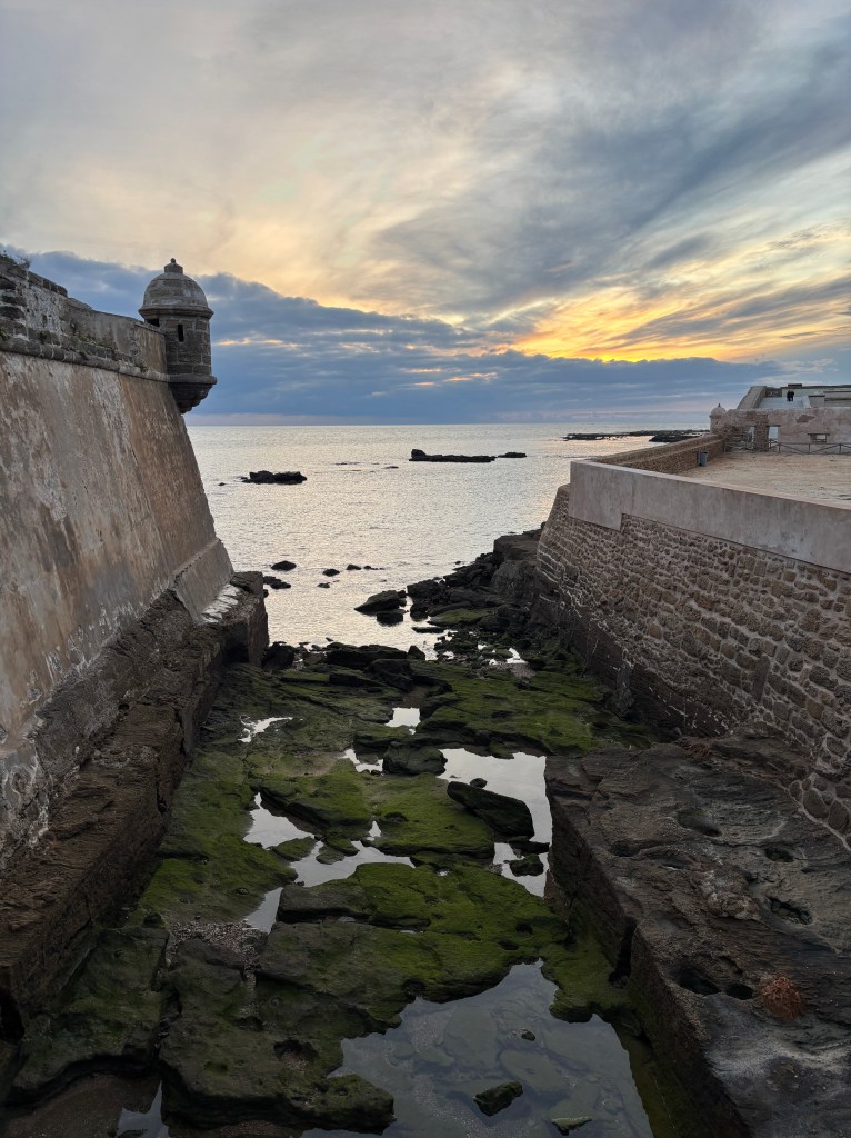 On Saturday, we had a slower start to the morning with breakfast in the square by the Cathedral. We spent the afternoon walking along the beach before heading to one of the fortresses on the edge of the ocean. According to a sign on the wall, it was a military prison during the Franco era for about 300 Jehovah’s Witnesses who consciously objected to forced military service. We passed a beautiful theater with a wedding photoshoot going on out front, then we stopped at a cute bookstore-cafe. We set back out to the long land bridge to the lighthouse for sunset, which was absolutely stunning. After sunset, we headed back to our Airbnb to rest before dinner. Victoria very kindly treated me to dinner at El Faro, a lovely restaurant near the lighthouse. We had some amazing seafood – grilled sea bass was the clear winner of the evening.