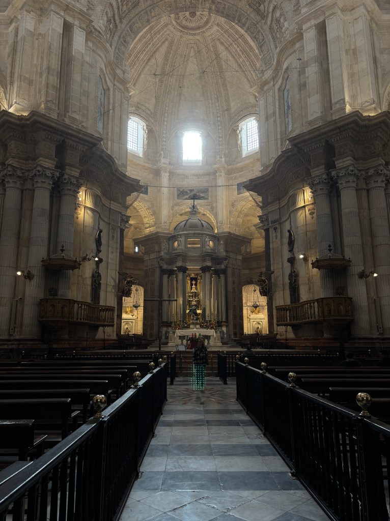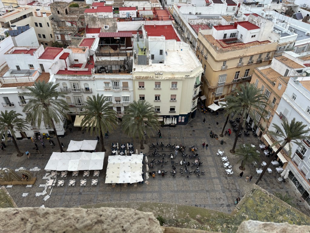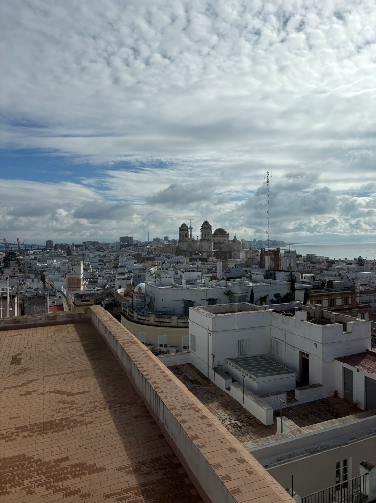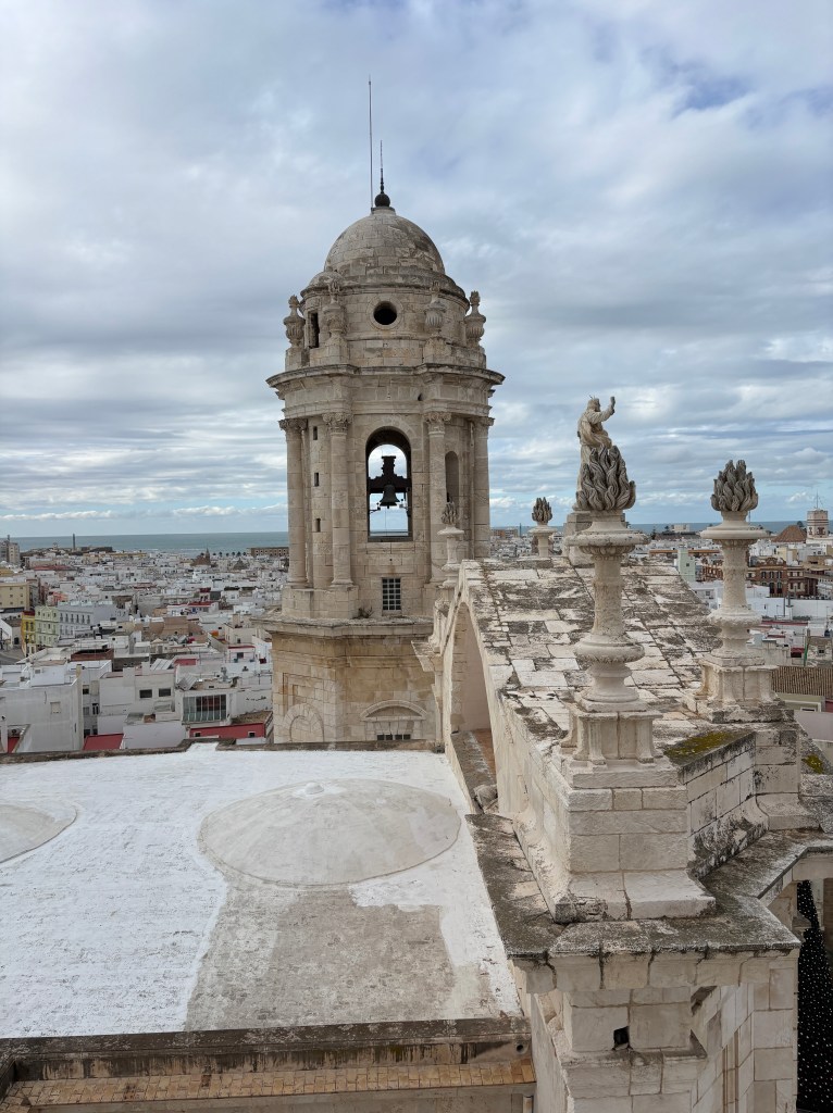 On Sunday morning, we took a quick, freezing dip into our rooftop pool before checking out of the Airbnb. We set out again on foot and stopped at a huge monument to the 1812 Constitution, which, I read, only lasted for 2 years until the King re-declared absolute monarchy. We kept walking and stopped into the Museum of Cádiz, which was full of Roman-era artifacts excavated from the region. There were two complete sarcofacuses (sarcofaci?)! We climbed the Torre Tavira and had an amazing view from the top of the entire city. Cádiz is quite short; most buildings are only 4 or 5 stories, so it was easy to see the bay, the ocean, and the cathedral from a relatively low vantage point.