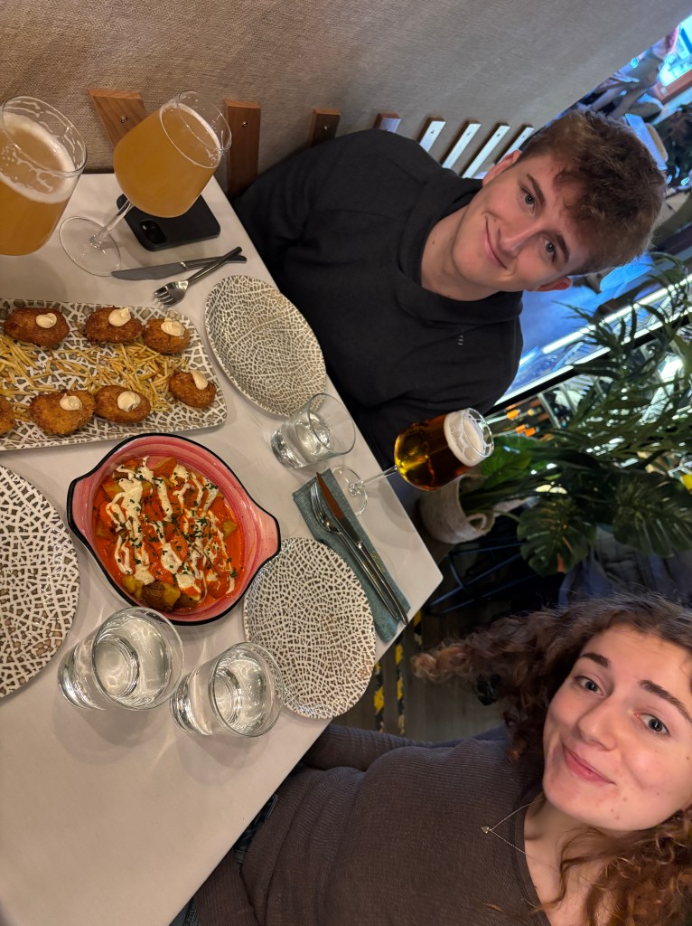 On Christmas Day, we had a later wake-up and went for a run around Retiro (Lev and I did two laps, and Clare crushed one and then found us all coffee). That afternoon, we took a ride out to Estadio Metropolitano, where the other major Madrid soccer team, Atlético Madrid, plays. They built a giant skating rink around the perimeter of the field, about 20 feet up from the surface. It was, according to the signs, the largest rink by skating area in Europe! We had a great time skating around before heading back to meet our counselor friend from camp, Manu, at my apartment for dinner. That night, Clare and I headed out to meet two of my collegague’s two college-aged kids to go out to a club! We had a very fun night and came back home late (early!) and slept in.