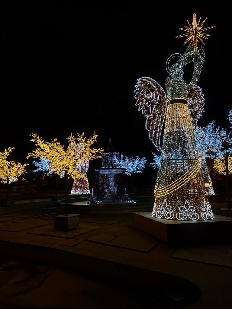 The next morning, we had brunch at a great restaurant near my house called Run, Run, Run (they do in fact have a running club!). We had a nice walk and museum visit in the afternoon before heading out to our night bus tour of the Christmas lights around Madrid. They claimed there were millions of lights (maybe 8 million? I forget). Lev asked for an official count. I’m not sure if we saw 8 million, but there were a lot, and from the roof of the double-decker bus, we could even touch a few dangling ones as we passed through the city. They played classic Spanish Christmas music and the group of little kids behind us sang their hearts out, we pretended to know the words.