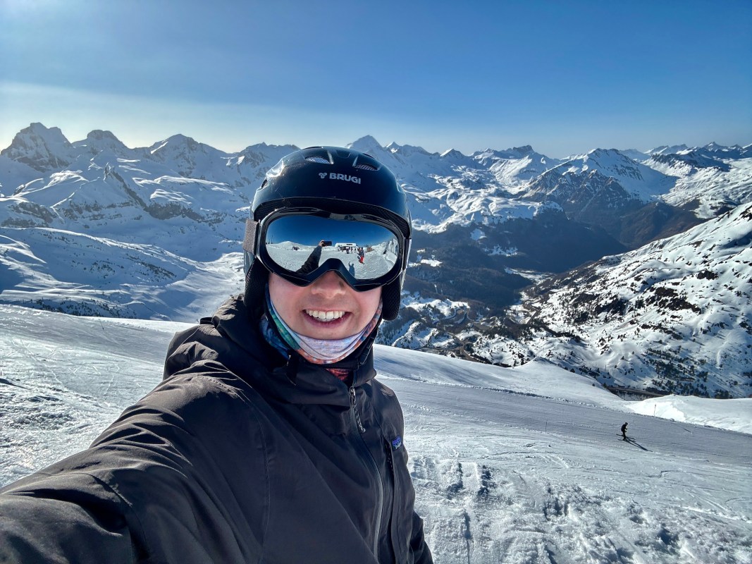 The next morning was probably the worst two hours of the trip, gear collection. After wake-up knocks down my hallway, I headed downstairs for breakfast before we rushed everyone over to the gear building to get boots, poles, skis, helmets, and snowboards. Many of the kids hadn’t skied or snowboarded before, and the weight and bulkiness of the boots was a shock. They split off into leveled ski groups with instructors, and we were free to ski! Skiing was definitely the most relaxing part of the day, which was an odd switch from my past ski trip experiences. Alex and I headed up the first lift and worked our way across the mountain, checking out the different areas.